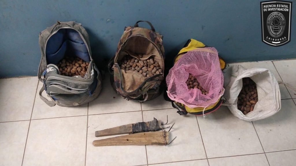 Mientras que, en el municipio de Jiménez, detuvieron a las personas de nombres Ricardo R.V., José Rito O. O., y Jaime R.V., quienes fueron sorprendidos cuando ingresaron a bordo de una camioneta marca General Motors, línea Sonoma, modelo 1995, de color gris, al Rancho El Fresno, de donde intentaron sustraer 26 kilogramos de nuez.