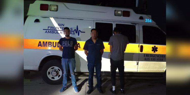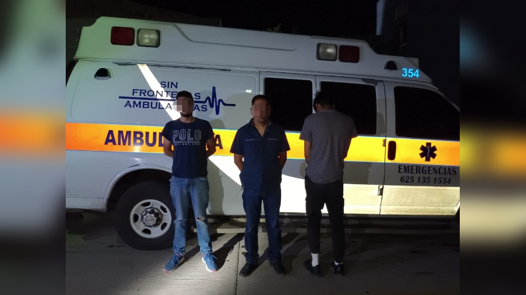 Elementos que integran las Células de Coordinación, detuvieron en Ciudad Cuauhtémoc a 3 sujetos que ingerían bebidas embriagantes a bordo de una ambulancia.