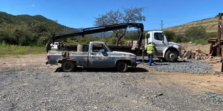 También aseguraron vehículos una pick up GMC Sierra modelo 1999 con serie 2GTEK19T4X1516881 sin placas de circulación; un Nissan Tsuru color gris con placas EFS 4723, sin llantas; un Chevrolet Malibu color gris con placas EN 7971; una camioneta Chevrolet Silverado color blanco con gris con placas DZ 74277, y un camión International modelo 8600 año 2005 con placas DM-4988A, serie 1HSHXAHR95J044627.