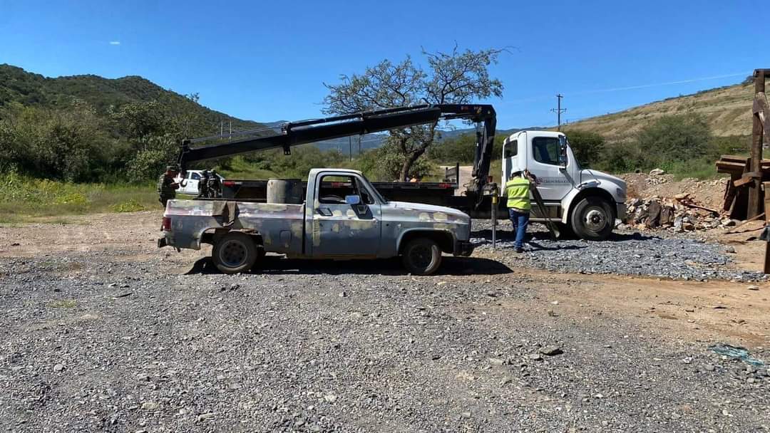 También aseguraron vehículos una pick up GMC Sierra modelo 1999 con serie 2GTEK19T4X1516881 sin placas de circulación; un Nissan Tsuru color gris con placas EFS 4723, sin llantas; un Chevrolet Malibu color gris con placas EN 7971; una camioneta Chevrolet Silverado color blanco con gris con placas DZ 74277, y un camión International modelo 8600 año 2005 con placas DM-4988A, serie 1HSHXAHR95J044627.