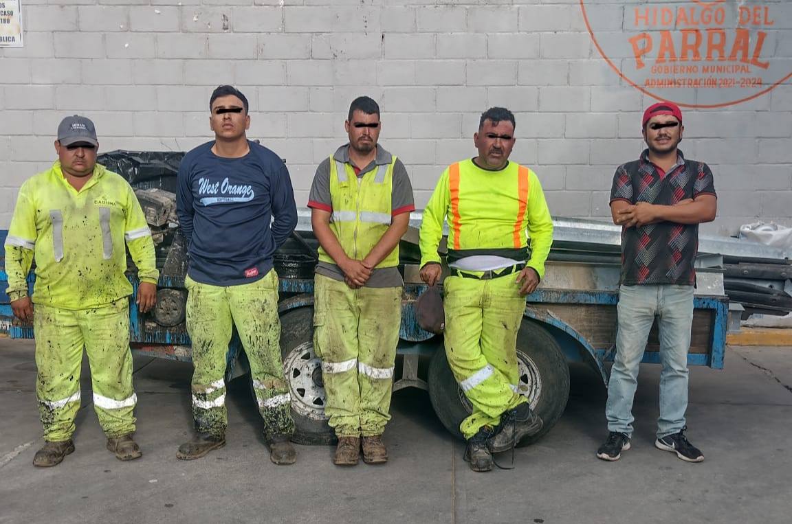 Como resultado de un trabajo de inteligencia realizado por elementos del Grupo Especial de Atención a Robos de la Dirección General de Seguridad Pública Municipal, cinco hombres fueron detenidos tratando de vender una serie de barras de contención que fueron robadas en la rúa que conecta en lo inmediato a Parral con la Capital del Estado.