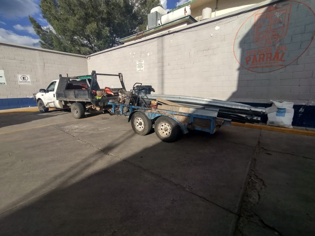 Los uniformados contando con información sobre los robos cometidos en la carretera Corta, arribaron a un negocio de chatarrería ubicado en la cercana comunidad de San Andrés, lugar donde visualizaron una camioneta F-250 color blanca que jalaba un remolque cargado con 15 barras de contención y 9 postes de barrera, listos para ser pesados en la báscula.