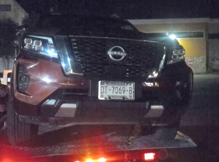 La noche de este lunes, elementos de Seguridad Pública Municipal aseguraron una camioneta Nissan Frontier modelo 2024, color naranja, cuyo conductor fue señalado por provocar un choque y posteriormente intentar darse a la fuga en el sector conocido como Vado de la Libertad.