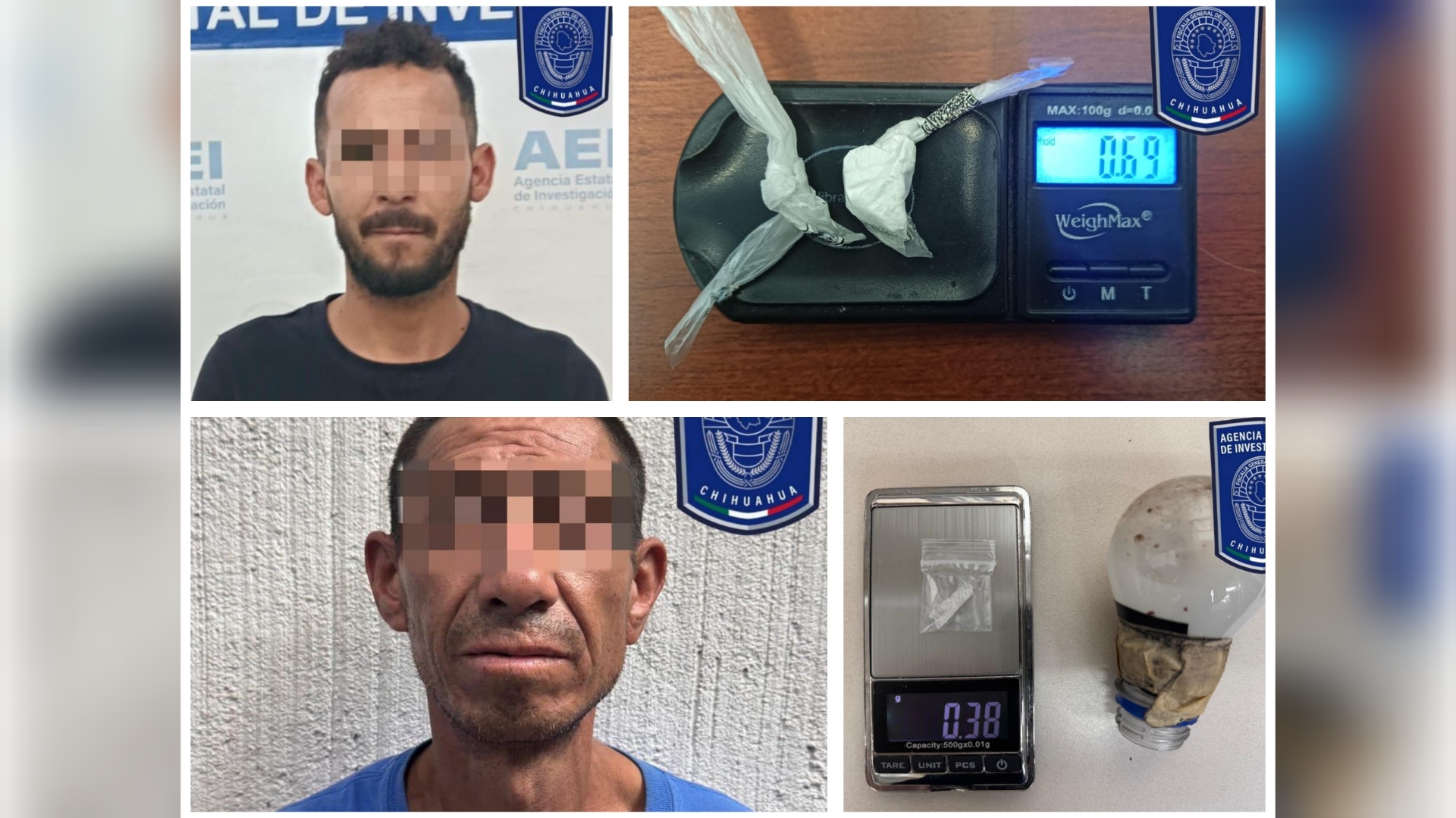 De manera simultánea en la calle Portugal, de la colonia Loma Linda, se detuvo a Nicolás G. H., a quien tras una revisión corporal, entre sus pertenencias se le encontró una bolsa de plástico con 0.38 gramos de metanfetamina, también conocida como cristal.