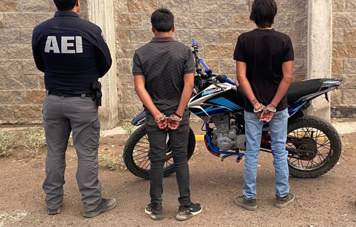 Por lo que detuvieron a sus tripulantes de nombres Ángel Ricardo B. P. y G.E.T.R., de 18 y 17 años de edad respectivamente, quienes quedaron a disposición del Ministerio Público que determinará su situación legal y realizará las diligencias para devolver la motocicleta recuperada a su propietario.