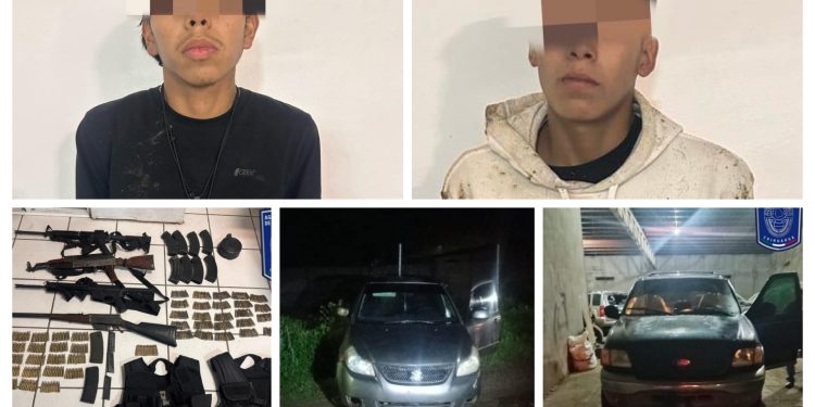 Al momento, dos masculinos se dieron a la fuga por las azoteas, lo que provocó una persecución pedestre, pero las autoridades les dieron alcance y detuvieron a los presuntos identificados como Juan Arturo P. P. y Edwin Javier A. M.