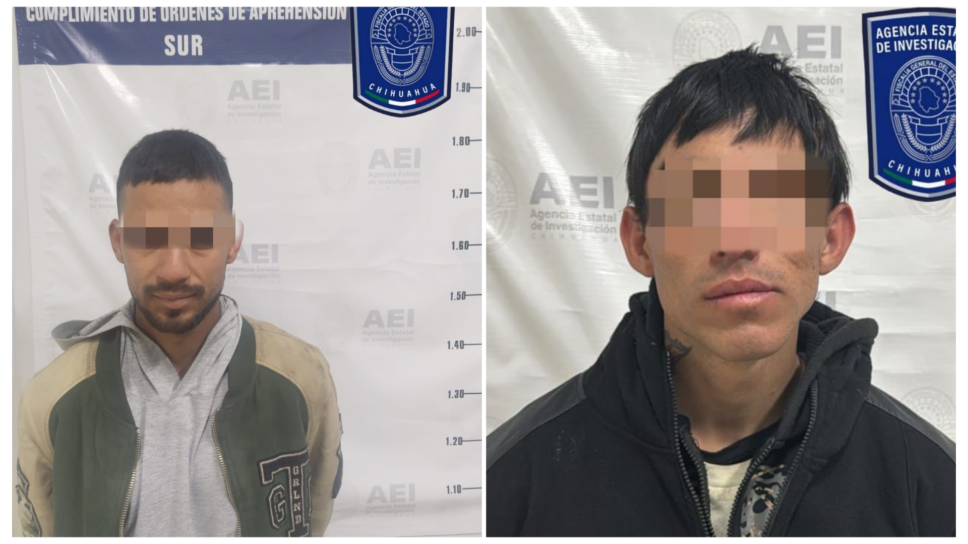 Elementos de la Agencia Estatal de Investigación (AEI) adscritos a la Fiscalía de Distrito Zona Sur, detuvieron mediante órdenes de aprehensión a dos masculinos acusados de diversos robos cometidos en la ciudad de Parral.