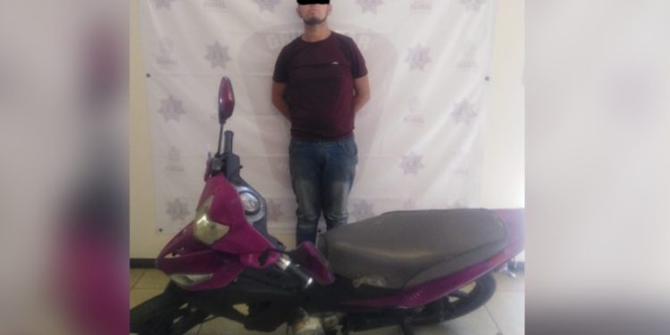 Con base en labor de inteligencia, elementos del Grupo Especial de Atención a Robos de Seguridad Pública logró ubicar a quien se identificó como Alan Leonardo G. L de 20 años de edad, de apodo “El Pecas”, en posesión de una motoneta que había robado un día antes.