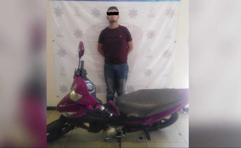 Con base en labor de inteligencia, elementos del Grupo Especial de Atención a Robos de Seguridad Pública logró ubicar a quien se identificó como Alan Leonardo G. L de 20 años de edad, de apodo “El Pecas”, en posesión de una motoneta que había robado un día antes.