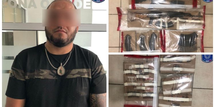 El sujeto portaba un arma larga, por lo que mediante comandos verbales se le ordenó arrojarla al piso y tirarse al suelo. Una vez asegurado, se le localizaron dos armas largas tipo fusil, así como siete cargadores abastecidos con balas de diversos calibres.