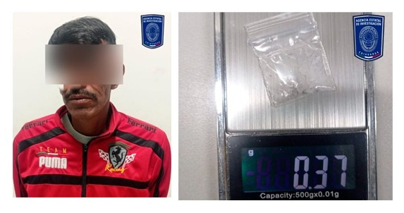 Derivado de los operativos para el combate del delito de narcomenudeo en las calles de Parral, elementos de la Agencia Estatal de Investigación (AEI) detuvieron a un masculino de 44 años de edad, en posesión de un envoltorio con 0.37 gramos de la droga conocida como cristal.