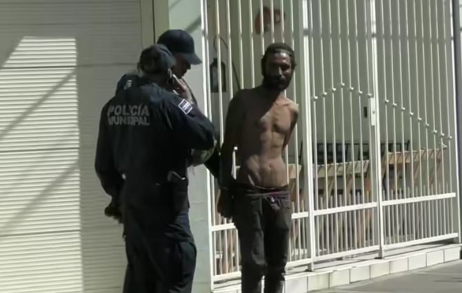 Una unidad patrulla de la Dirección de Seguridad Pública Municipal atendió el reporte y se constituyeron en el lugar, logrando identificar y detener al individuo que traía el dorso desnudo, sobre la calle 15 se mayo, a un costado del Teatro Hidalgo.