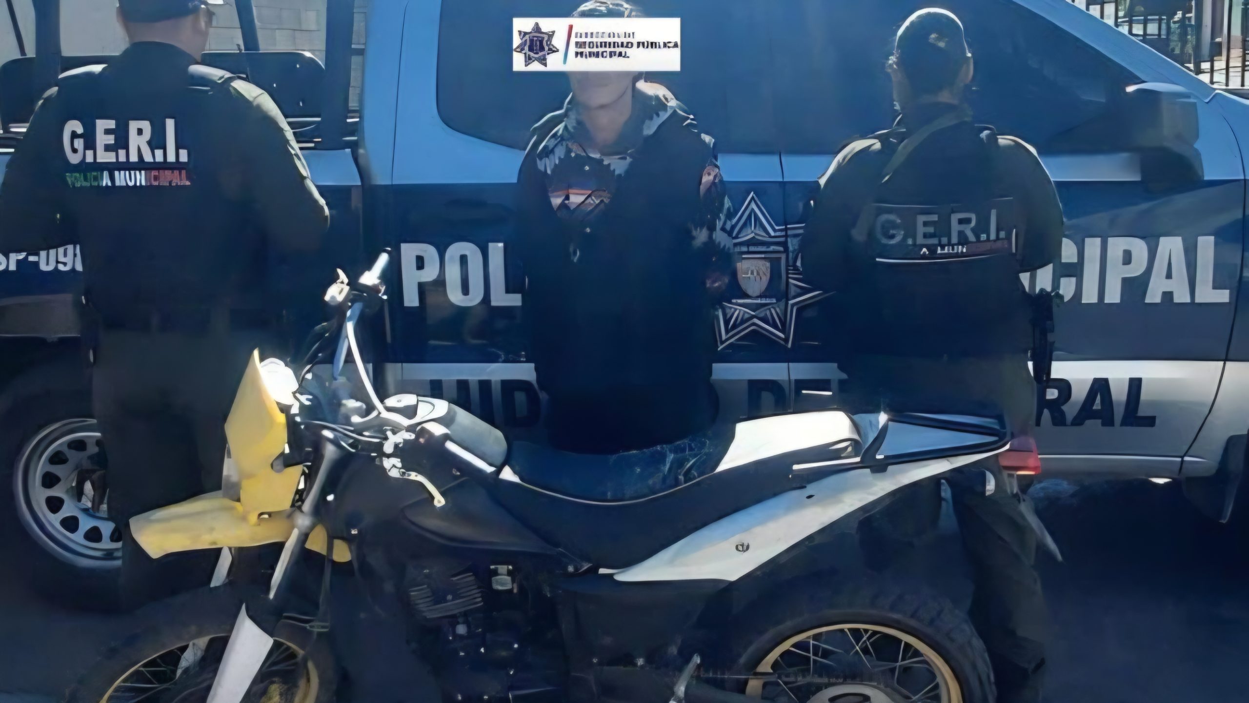 Elementos de la Dirección de Seguridad Pública Municipal (DSPM), adscritos al Grupo Especial de Reacción Inmediata (GERI), lograron la detención de Kevin P. C., de 21 años de edad, por su probable participación en el delito de robo de una motocicleta, misma que fue asegurada y resguardada.