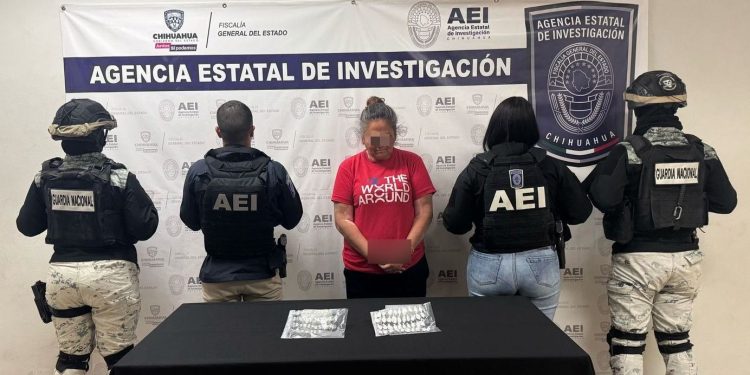 Elementos de la Agencia Estatal de Investigación, adscritos a la Fiscalía de Distrito Zona Norte, detuvieron a una persona identificada como Basiliza H., por delitos contra la salud, en la colonia Fronteriza, en Ciudad Juárez.