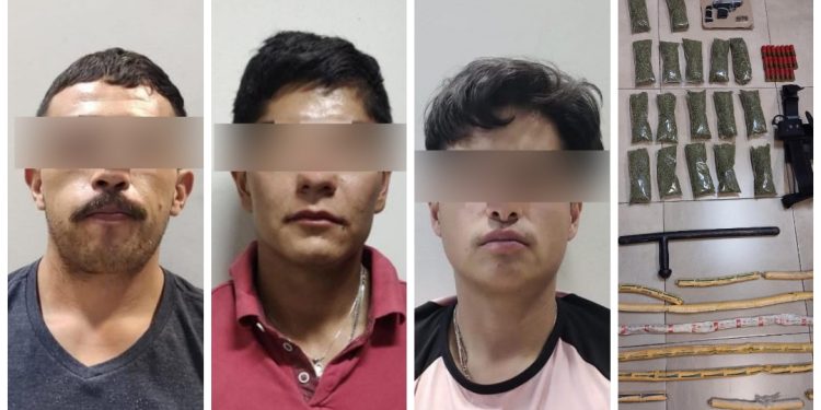 Dentro de las acciones efectuadas para la disuasión e investigación de los delitos en la ciudad de Parral, elementos de la Agencia Estatal de Investigación (AEI) detuvieron en el término legal de la flagrancia a tres hombres por posesión simple narcóticos, posesión de arma de fuego y explosivos.
