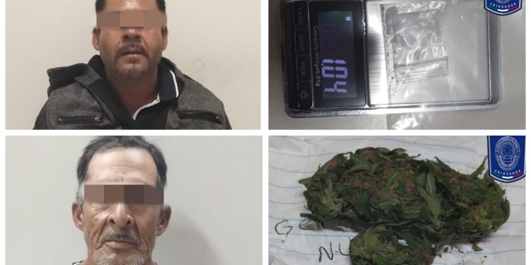 Elementos de la Agencia Estatal de Investigación (AEI) que participan en los operativos desplegados en la ciudad de Parral para la disuasión de los delitos, detuvieron en flagrancia a dos masculinos por su probable responsabilidad en el delito contra la salud, en la modalidad de posesión simple de narcóticos.