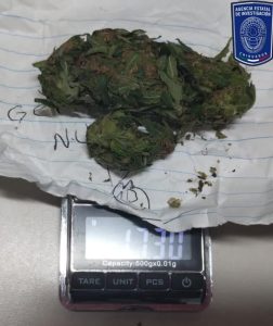 Continuando con los recorridos, sobre la calle División del Norte en la colonia Emiliano Zapata, los Agentes le realizaron una revisión corporal a un masculino de nombre Antonino R., de 55 años, a quien se le encontró entre sus pertenencias un envoltorio de papel con 17.30 gramos de marihuana.