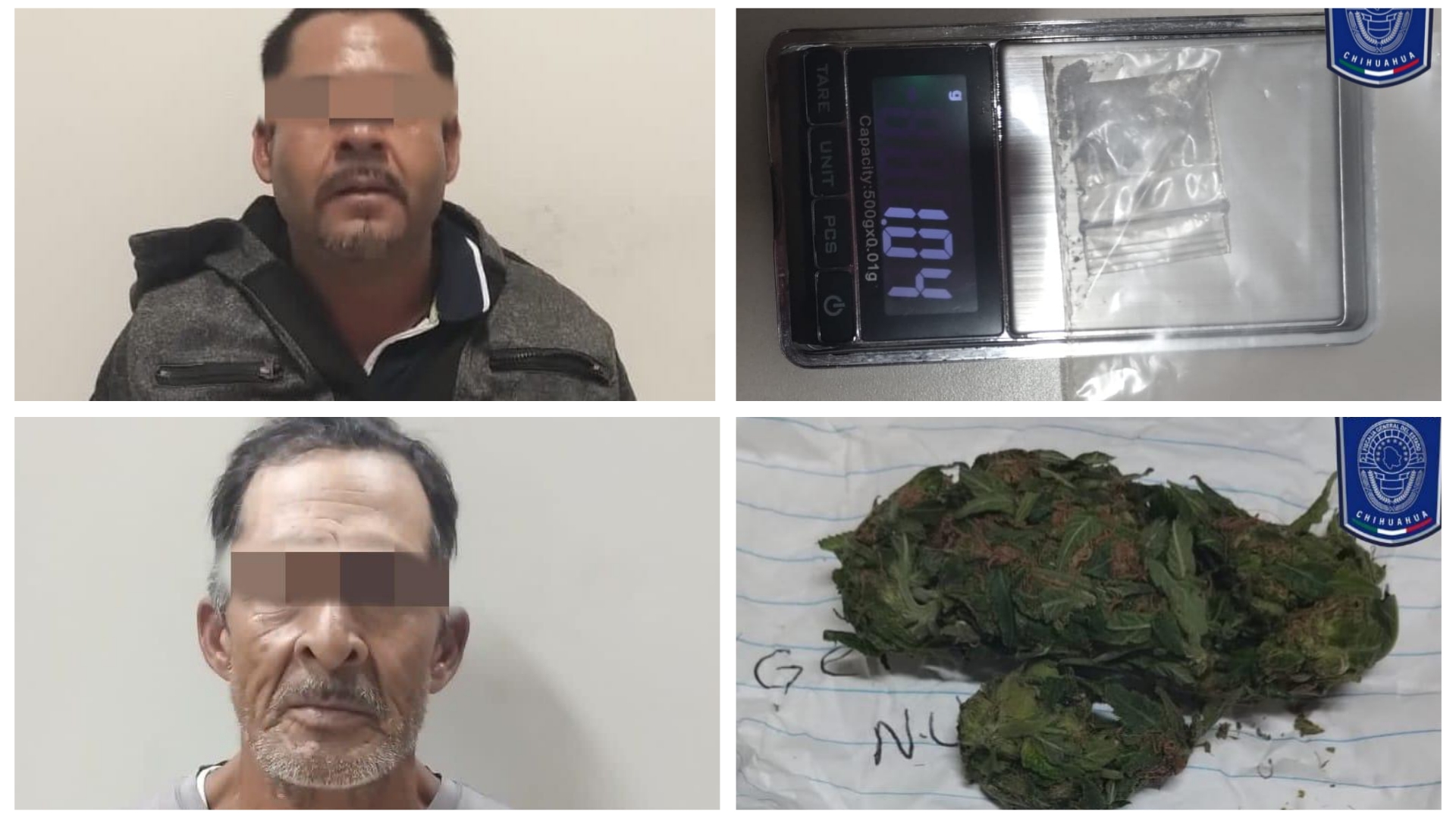 Elementos de la Agencia Estatal de Investigación (AEI) que participan en los operativos desplegados en la ciudad de Parral para la disuasión de los delitos, detuvieron en flagrancia a dos masculinos por su probable responsabilidad en el delito contra la salud, en la modalidad de posesión simple de narcóticos.