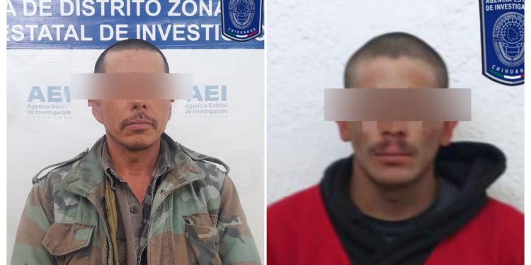 Elementos de la Agencia Estatal de Investigación (AEI) que participan en los operativos para la disuasión de los delitos en la ciudad de Parral, a dos masculinos por el delito de posesión simple de narcóticos.
