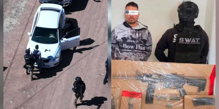 Un operativo de vigilancia en el seccional de Anáhuac derivó en la captura de un hombre que portaba armamento y equipo táctico, así como en el aseguramiento de un vehículo presuntamente relacionado con eventos delictivos recientes en el municipio de Cuauhtémoc.