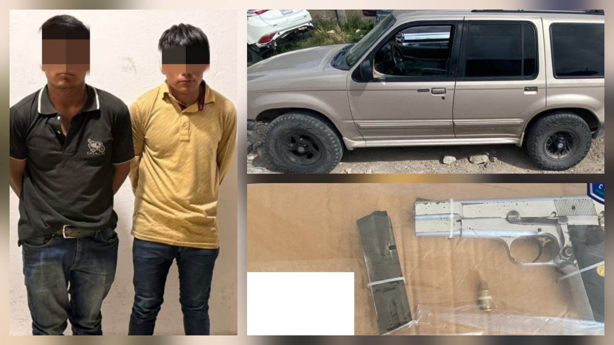 En dicho lugar, revisaron una camioneta de la marca Ford, línea Explorer, modelo 1998, color arena, la cual era tripulada por Javier C. B. y Samuel Manuel C. B., a quienes se les aseguró una pistola tipo escuadra, marca Browning, calibre .9 milímetros, abastecida con un cartucho.