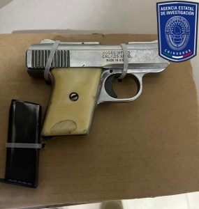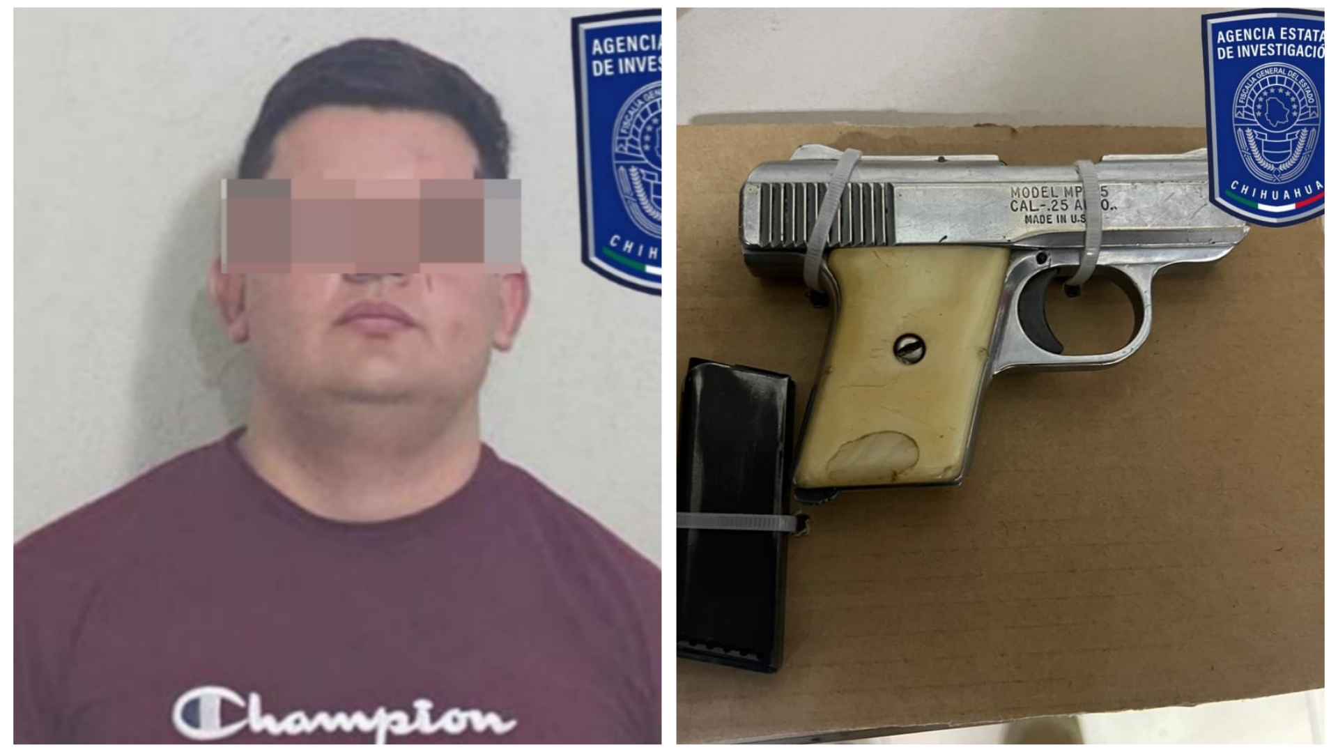 La detención, acreditada en los términos de la flagrancia, tuvo lugar en el municipio de Allende, donde se le aseguró una pistola marca Raven, calibre .25, de color gris, con su cargador desabastecido, con la que momentos antes, presuntamente causó daños a una tienda y a un automotor en el cruce de las calles Juan Rangel de Biezma y Ricardo Flores Magón, en la ciudad de Parral.