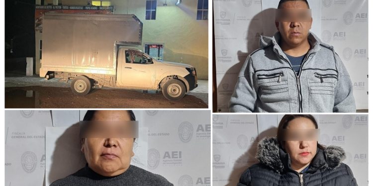 Elementos de la Agencia Estatal de Investigación, adscritos a la Fiscalía de Distrito Zona Occidente en el municipio de Bocoyna, detuvieron a tres personas que tripulaban un vehículo de la marca Nissan, línea NP300., que contaba con reporte de robo.