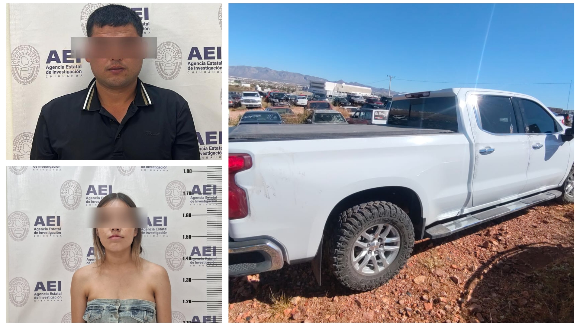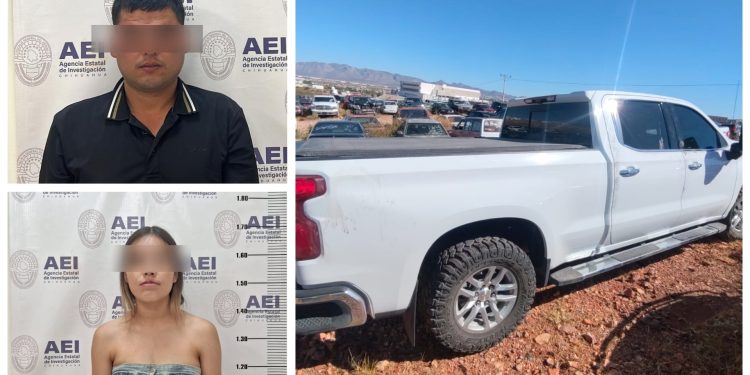 La detención de la pareja, fue el pasado domingo 29 de septiembre a cargo de elementos de la Agencia Estatal de Investigación, cuando estaban en posesión de una pick up de la marca Chevrolet, línea Silverado, de color blanco, modelo 2021, que fue robada con violencia ese mismo día a la altura del kilómetro 34 de la carretera Chihuahua – Cuauhtémoc.