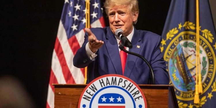 En un discurso en el estado de Nuevo Hampshire, Trump presumió de las presiones a las que supuestamente sometió al Ejecutivo de López Obrador para que aceptara el polémico programa «Quédate en México», creado en 2019 y que obligaba a migrantes y refugiados a permanecer en México mientras se resolvían sus peticiones de asilo.