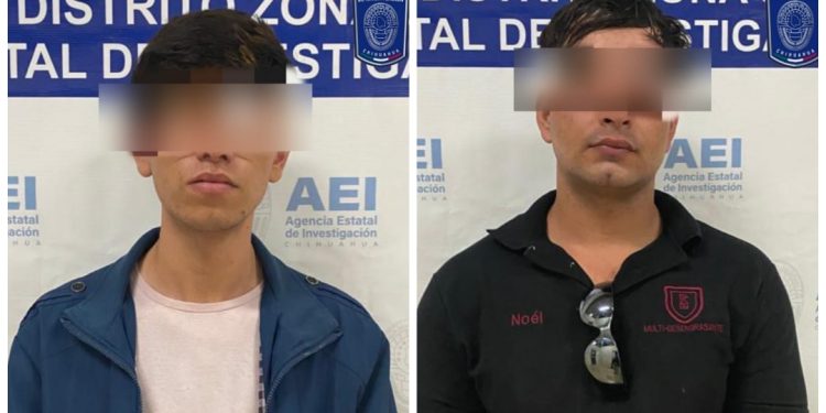 La detención de Cesar Humberto E. L., de 25 años de edad y de Ángel Noel R. R., de 26 años de edad, se registró ayer martes, en la ciudad de Parral, quedando a disposición del Ministerio Público.