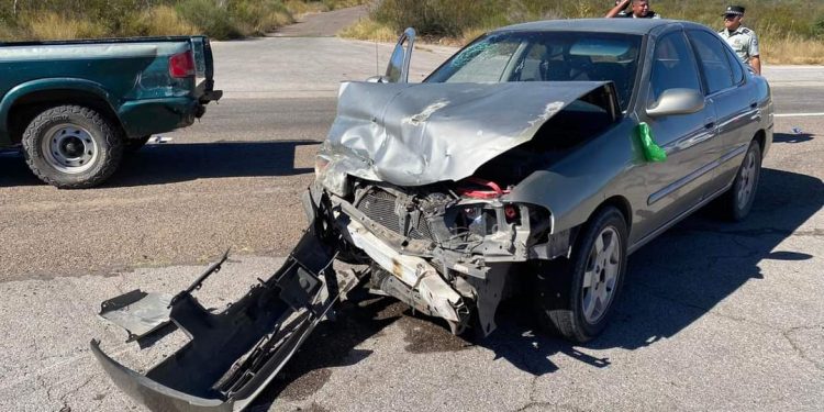 Justo en el entronque con el Ejido Guillermo Baca se suscitó un encontronazo entre un automóvil y una pick up que dejó como saldo dos adultos lesionados, mismos que fueron atendidos en el lugar.