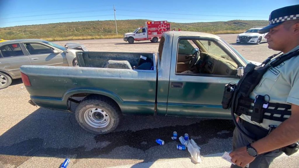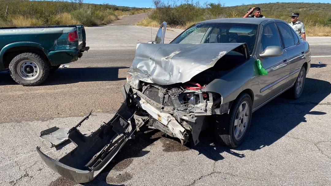 Personal de la Guardia Nacional División Carreteras, así como paramédicos de Cruz Roja, se apersonaron en el lugar, encontrando un Nissan Sentra, color arena, con fuertes daños materiales en la parte frontal.
