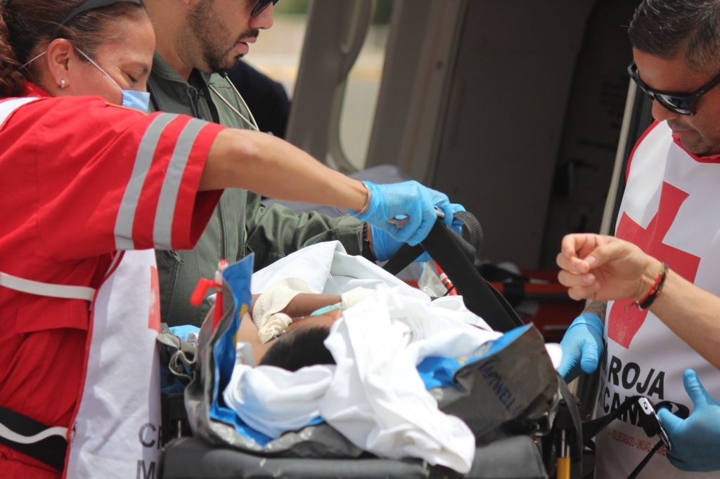 Posteriormente, personal de la Secretaría de Salud, con apoyo de una Unidad de Rescate del Gobierno del Estado (URGE) y Cruz Roja, completó el traslado terrestre de los pacientes; el menor de edad fue ingresado al Hospital Infantil de Especialidades y la mujer al Hospital Central.