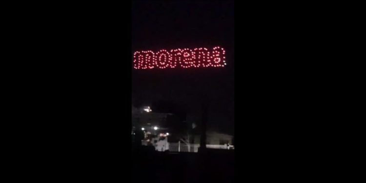 Drones LED con el logo de MORENA iluminan el cielo de Chihuahua