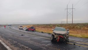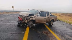Una familia de paisanos que remolcaban una camioneta, milagrosamente salvaron sus vidas al ser embestidos por otra unidad que derrapó debido a lo mojado del pavimento sobre la carretera Jiménez-Torreón.