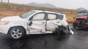 Al arribar las autoridades localizaron a tres camionetas: una Toyota blanca cerrada de modelo reciente y con placas de California, en la que se trasladaba una familia de paisanos, quienes remolcaban otra camioneta de la misma marca, pero de modelo atrasado, cargada con diversos artículos para el hogar y en su techo bicicletas.