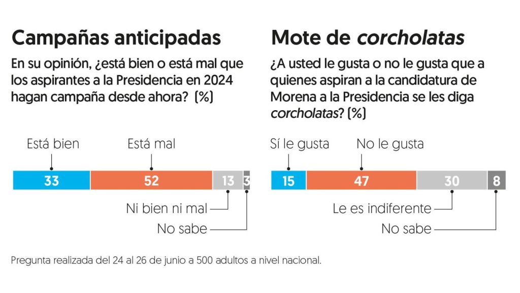 Desde que el presidente López Obrador se refirió a los aspirantes presidenciales como corcholatas, el mote ha permeado en la discusión pública; no obstante, al preguntar a la ciudadanía si les gusta o no el término, 15 por ciento dijo que sí le gusta, 47 por ciento, que no le gusta y 30 por ciento, que le es indiferente.