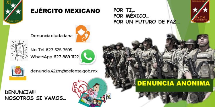 La Comandancia de la 42/a. Zona Militar lanzó un llamado a la ciudadanía para fortalecer la seguridad en la región, invitando a la población a realizar denuncias de manera anónima sobre hechos ilícitos o situaciones que representen un riesgo para la comunidad.