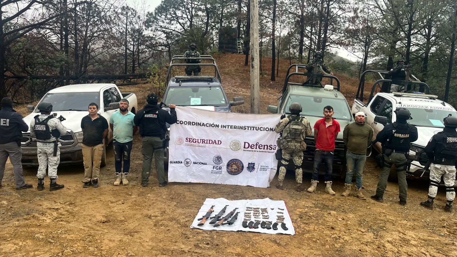 La comandancia de la XI Región Militar y 42/a. Zona Militar informó que, en cumplimiento a lo establecido en la Estrategia Nacional de Seguridad Pública, el 24 de enero del presente año, integrantes de la Guardia Nacional, en coordinación con personal del Ejército Mexicano y autoridades de los tres órdenes de gobierno, durante patrullajes de vigilancia en la comunidad de Cieneguita de Rodríguez, municipio de Moris, detuvieron a 4 personas y aseguraron lo siguiente: