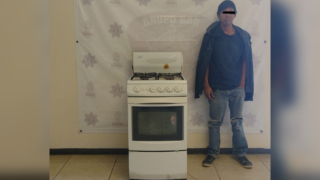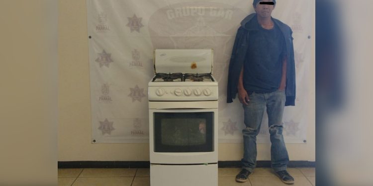 Agentes incorporados al Grupo Especial de Atención a Robos de la Dirección de Seguridad Pública Municipal, arrestaron a un hombre de 24 años luego de ser sorprendido mientras cargaba en su espalda una estufa que previamente había sido reportada por robo en el sector de Paseos de La Almanceña.