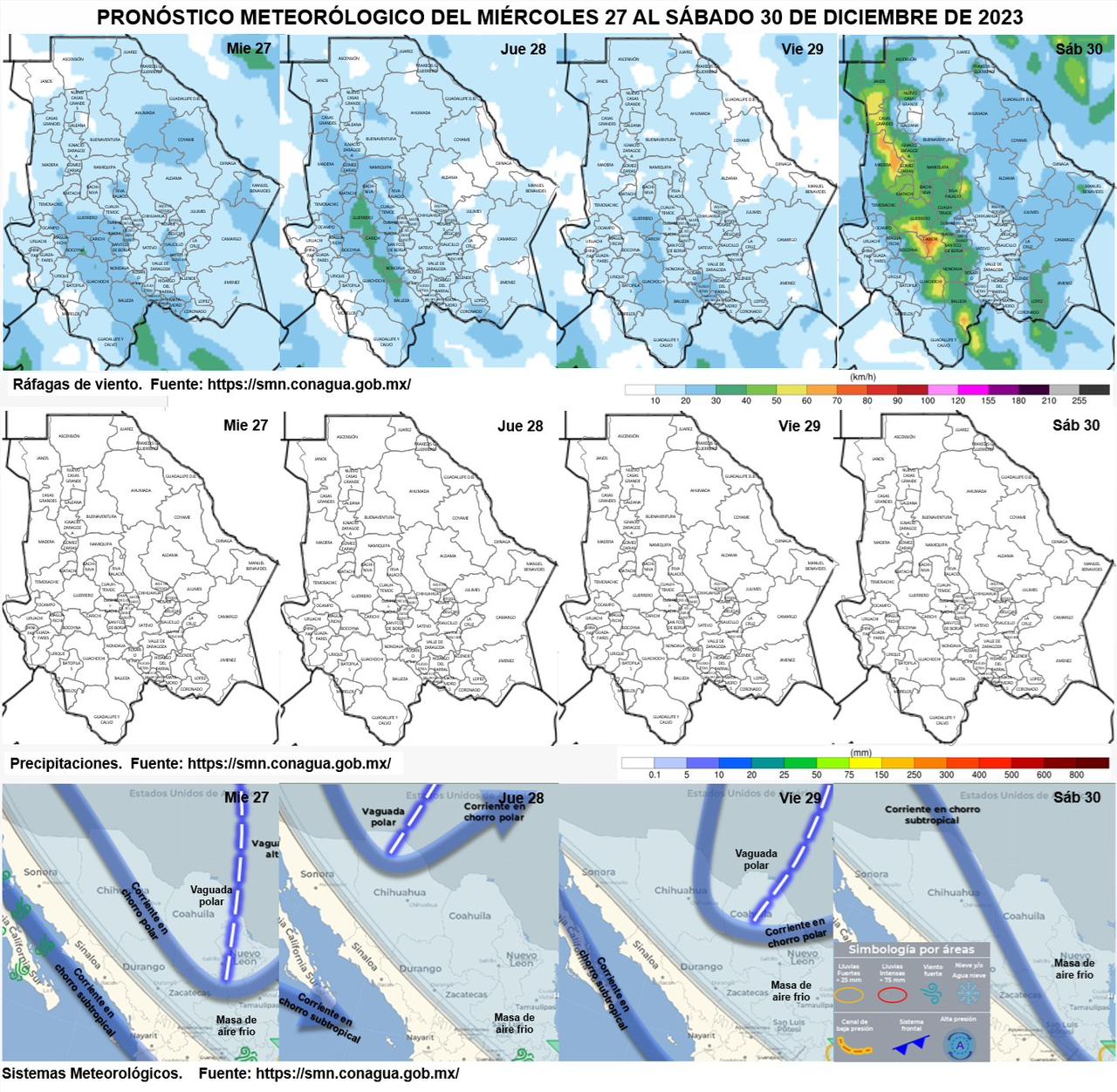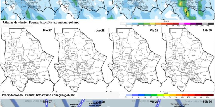 En cuanto a los vientos estos irán de 5 a 20 kilómetros por hora (km/h), con ráfagas que pueden alcanzar los 35 km/h en Guerrero, Carichí y Nonoava.
