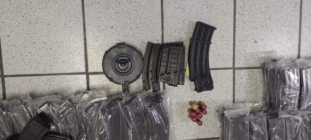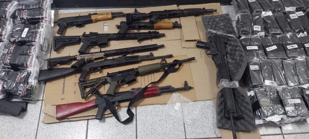 Más tarde, elementos del Ejército Mexicano ubicaron en una zona cercana al Centro de Readaptación Social No. ll, frente a un predio de la empresa Kenworth, la unidad semirremolque en cuyo Interior localizaron 3 vehículos de diferentes modelos, así como 21 fusiles de asalto de diversos calibres entre ellos AK 47 y AR15, además de armas cortas, decenas de cargadores y miles de cartuchos útiles.