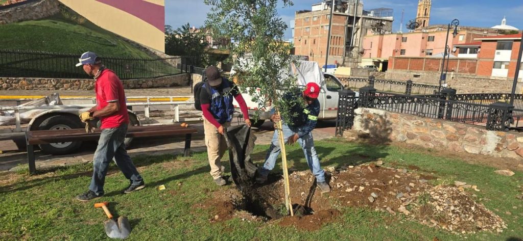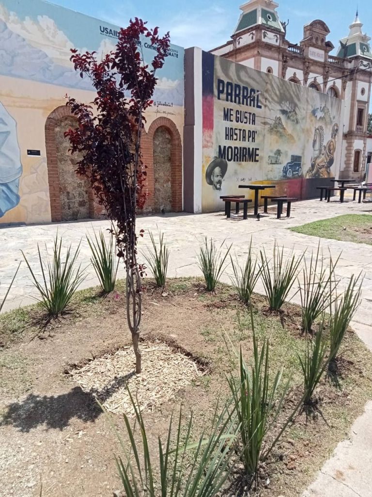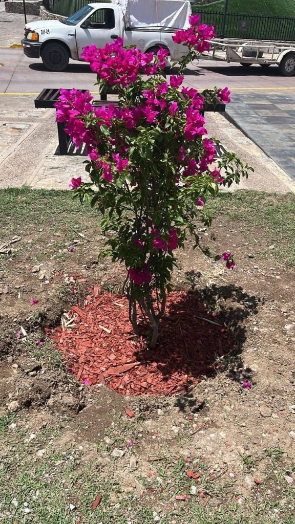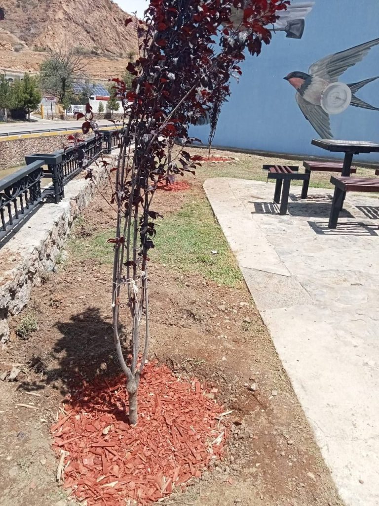 Entre las plantas ornamentales incorporadas destacan el ciruelo rojo, lirio persa, olivo y bugambilia, cuya presencia no solo mejora la estética del lugar, sino que contribuye a la regulación ambiental, la biodiversidad y el confort térmico en la zona.