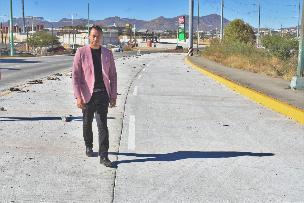 Lo anterior fue dado a conocer por el Munícipe quien destacó que la pavimentación del dicho tramo consistente en 3 mil 705 metros cuadrados ya se encuentra en su etapa final luego de haberse aplicado un espesor de 20 centímetros de concreto hidráulico que beneficiará al sector industrial de la zona, así como a los guiadores que transitan diariamente por la vía periférica.