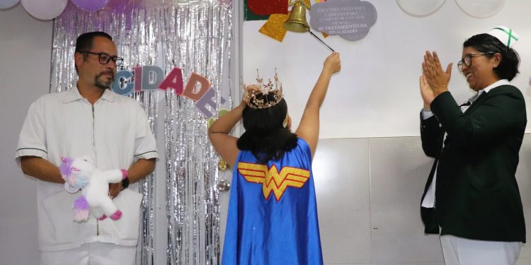 Este viernes, Ana Sofía de nueve años, procedente del municipio de Delicias, Chihuahua, tocó la “Campana de la Esperanza” del Hospital General Regional (HGR) No.01, “Morelos”, del Instituto Mexicano del Seguro Social (IMSS) en la entidad.