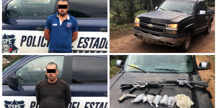 Elementos de la Secretaría de Seguridad Pública del Estado (SSPE), en coordinación con la Secretaría de la Defensa Nacional (Sedena) y la Guardia Nacional, detuvieron en el municipio de Urique a dos sujetos, que viajaban en un vehículo en posesión de 2 armas largas, un arma corta y droga.