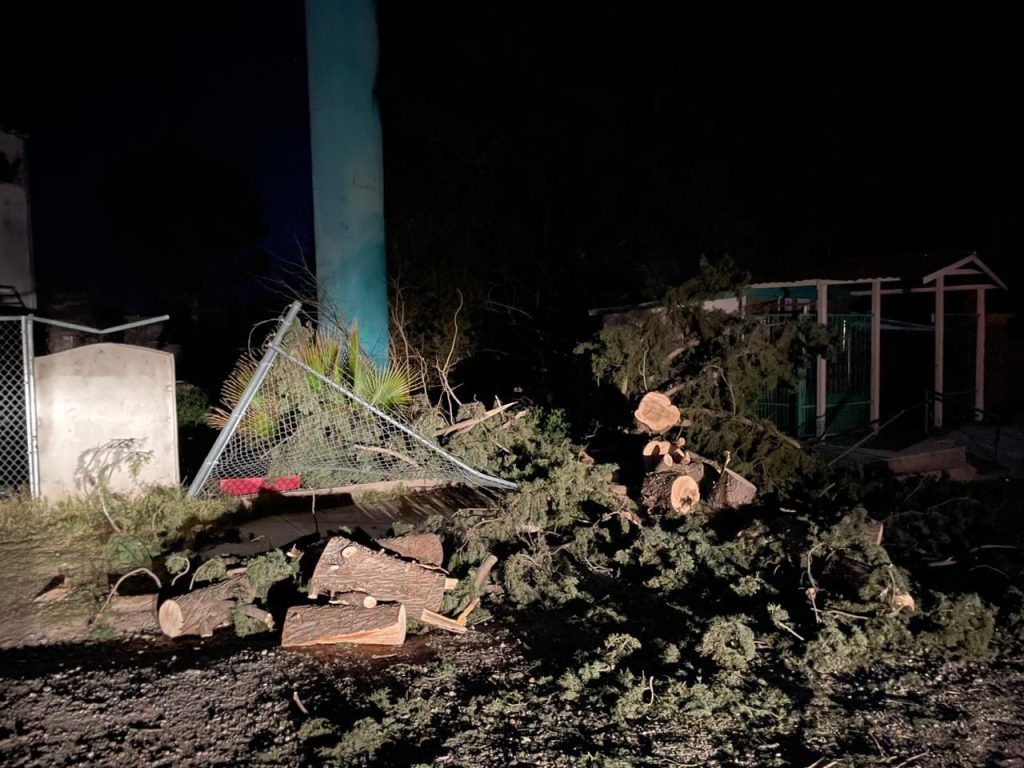 -Camargo: un portón derribado por los vientos y dos árboles caídos.