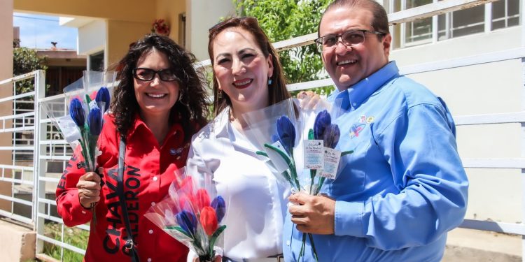 Con motivo del Día de la Madre, y acompañado de su esposa, Chava Calderón, regaló flores naturales a las mamás de Parral, en una actividad en la que participó, además, su suplente, Annette Deister, y miembros del equipo de campaña.