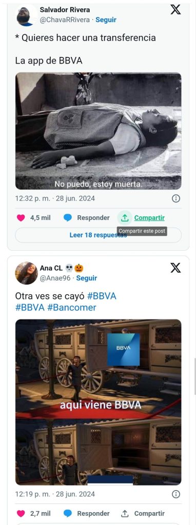 USUARIOS SE BURLAN DE FALLAS EN APLICACIÓN MÓVIL DE BBVA