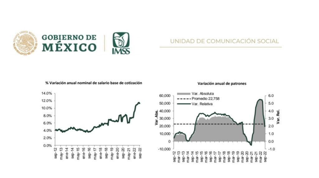 · Al cierre de septiembre 2022, el salario base de cotización promedio de los puestos de trabajo afiliados al IMSS alcanzó un monto de $480.7 (cuatrocientos ochenta punto siete).